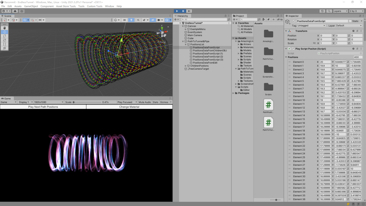 Path To Tunnel & Tube & Pipe FX is a powerful Unity plugin designed to convert List<Vector3> data into tunnel, tube, or pipe models effortlessly. With the ability to customize the orientation of model normals towards the inside or outside of the pipe, this plugin offers unparalleled flexibility in channel creation. Additionally, it includes over 800 Tile or Noise textures and 30 example effects, providing a rich library of resources to enhance your tunnel and pipe designs.You can also obtain line data from cinemachine for pipeline modeling。