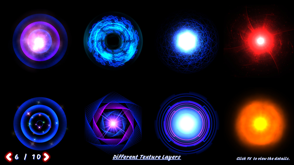 Achieve eye-catching motion by blending multiple texture layers with independent control over rotation, scale, and UV offset — all driven by intuitive sliders.